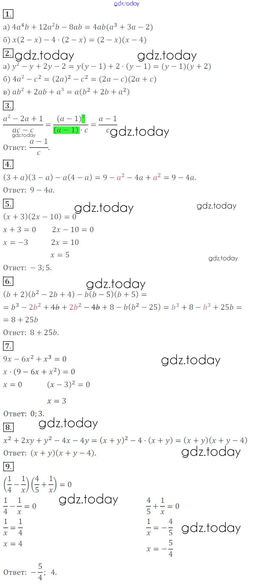 Ответы к Решение к контрольной работе №8. Разложение многочленов на множители Вариант 4 Контрольным работам по Алгебре для 7 класса Кузнецова, Минаева Просвещение 2018