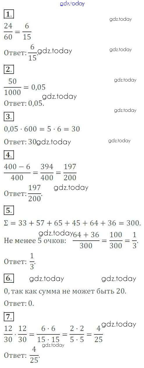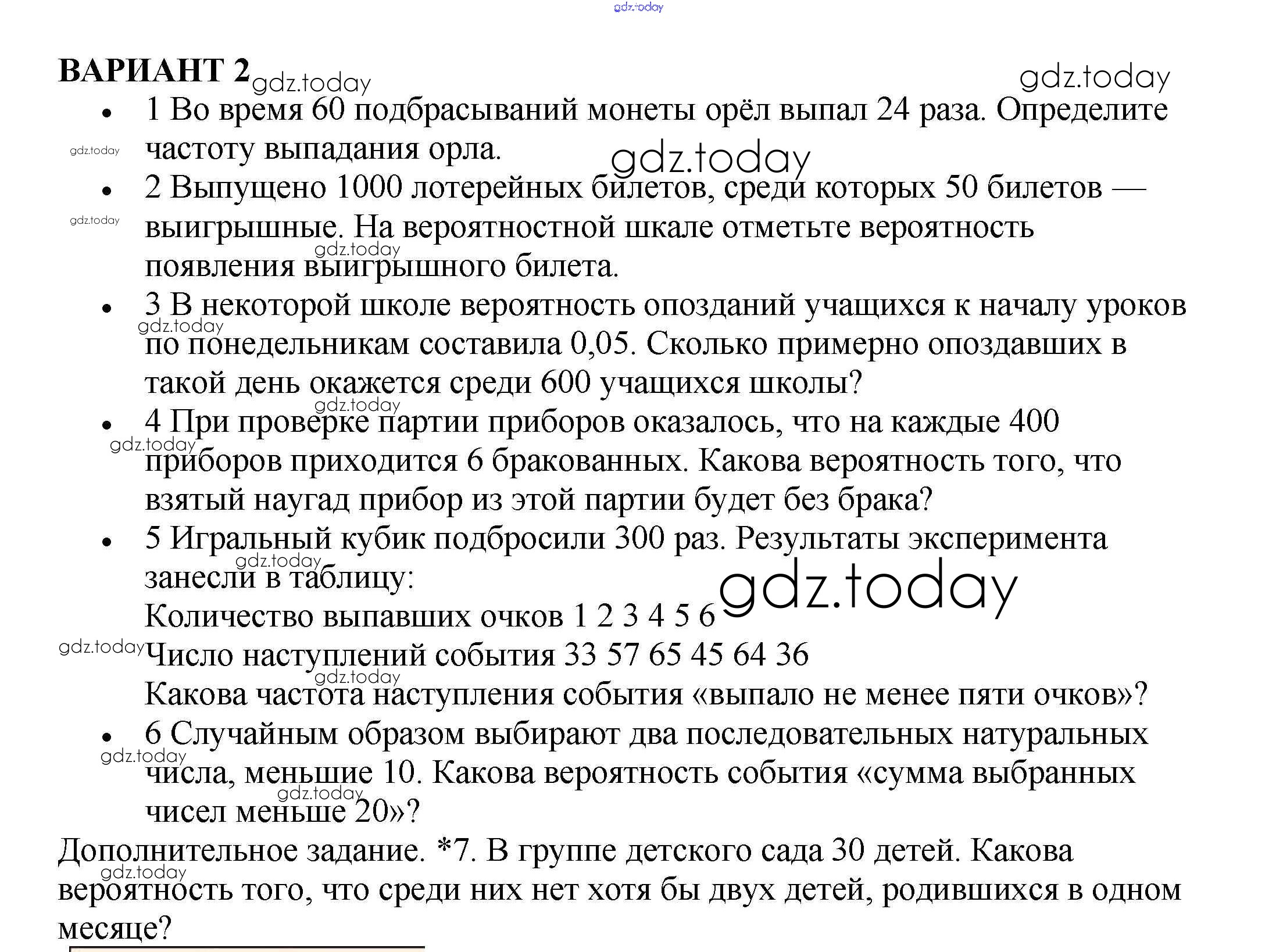 На страницах сайта gdz.today вы найдете учебный и вспомогательный материал, направленный на улучшения знаний школьной программы. ГДЗ - онлайн мир знаний Решение к контрольной работе №9. Частота и вероятность Вариант 2 Контрольным работам по Алгебре для 7 класса Кузнецова, Минаева Просвещение 2018