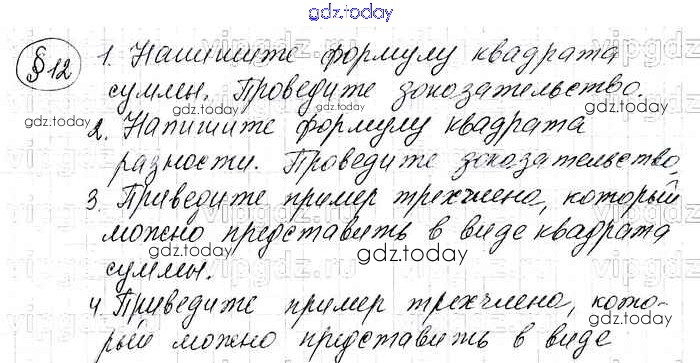 На страницах сайта gdz.today вы найдете учебный и вспомогательный материал, направленный на улучшения знаний школьной программы. ГДЗ - онлайн мир знаний Решение. Контрольные вопросы и задания §12 Учебнику по Алгебре для 7 класса Макарычев, Миндюк Просвещение 2015