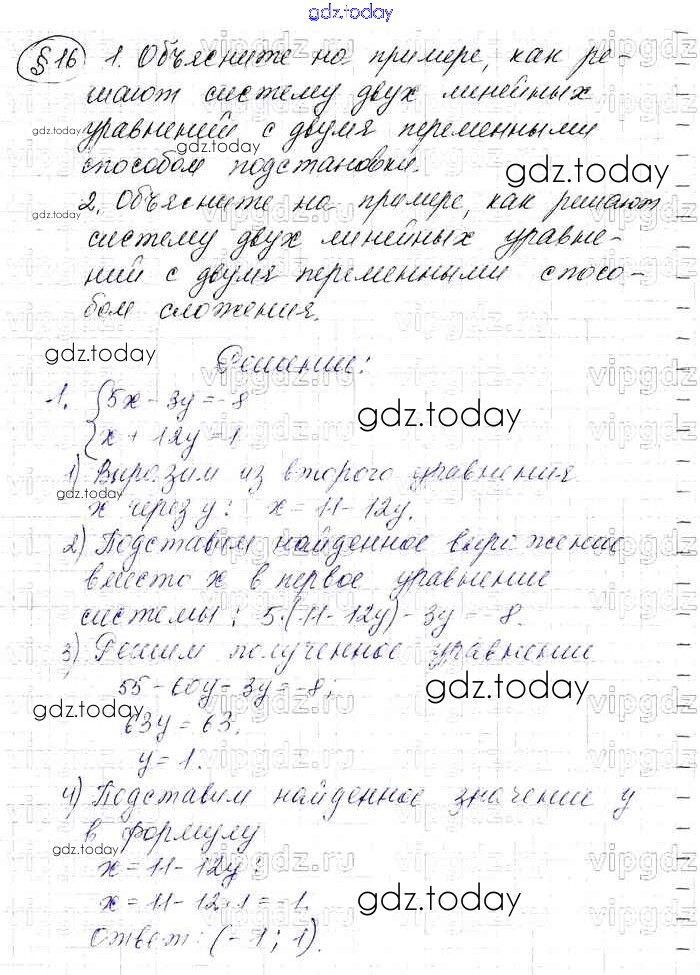 На страницах сайта gdz.today вы найдете учебный и вспомогательный материал, направленный на улучшения знаний школьной программы. ГДЗ - онлайн мир знаний Решение. Контрольные вопросы и задания §16 Учебнику по Алгебре для 7 класса Макарычев, Миндюк Просвещение 2015