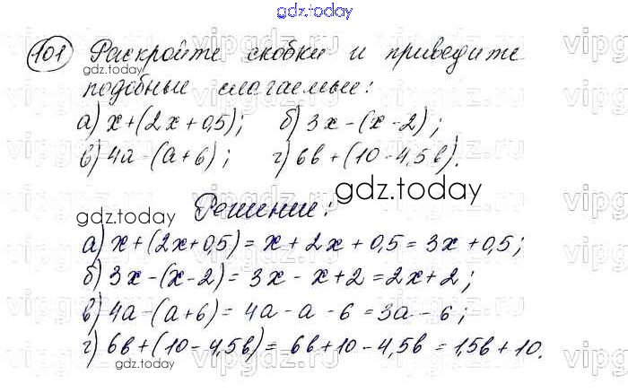 На страницах сайта gdz.today вы найдете учебный и вспомогательный материал, направленный на улучшения знаний школьной программы. ГДЗ - онлайн мир знаний Решение. Упражнения 101 Учебнику по Алгебре для 7 класса Макарычев, Миндюк Просвещение 2015