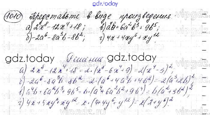 На страницах сайта gdz.today вы найдете учебный и вспомогательный материал, направленный на улучшения знаний школьной программы. ГДЗ - онлайн мир знаний Решение. Упражнения 1010 Учебнику по Алгебре для 7 класса Макарычев, Миндюк Просвещение 2015
