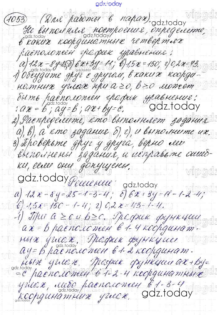 На страницах сайта gdz.today вы найдете учебный и вспомогательный материал, направленный на улучшения знаний школьной программы. ГДЗ - онлайн мир знаний Решение. Упражнения 1053 Учебнику по Алгебре для 7 класса Макарычев, Миндюк Просвещение 2015