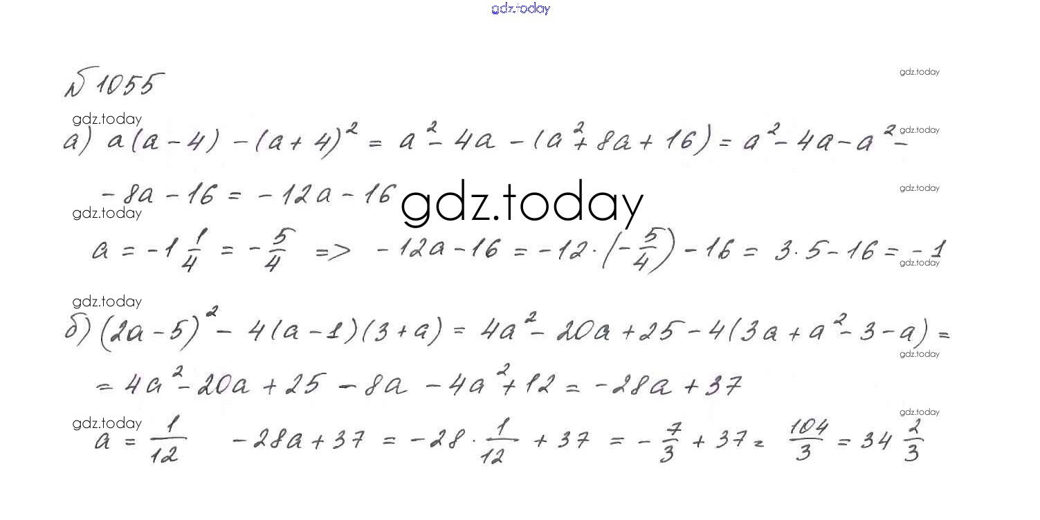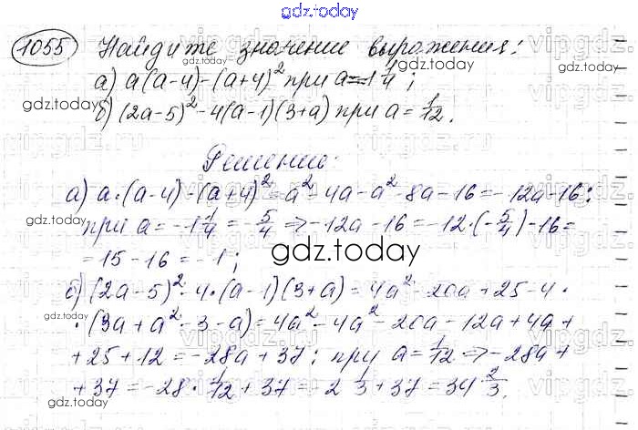 На страницах сайта gdz.today вы найдете учебный и вспомогательный материал, направленный на улучшения знаний школьной программы. ГДЗ - онлайн мир знаний Решение. Упражнения 1055 Учебнику по Алгебре для 7 класса Макарычев, Миндюк Просвещение 2015