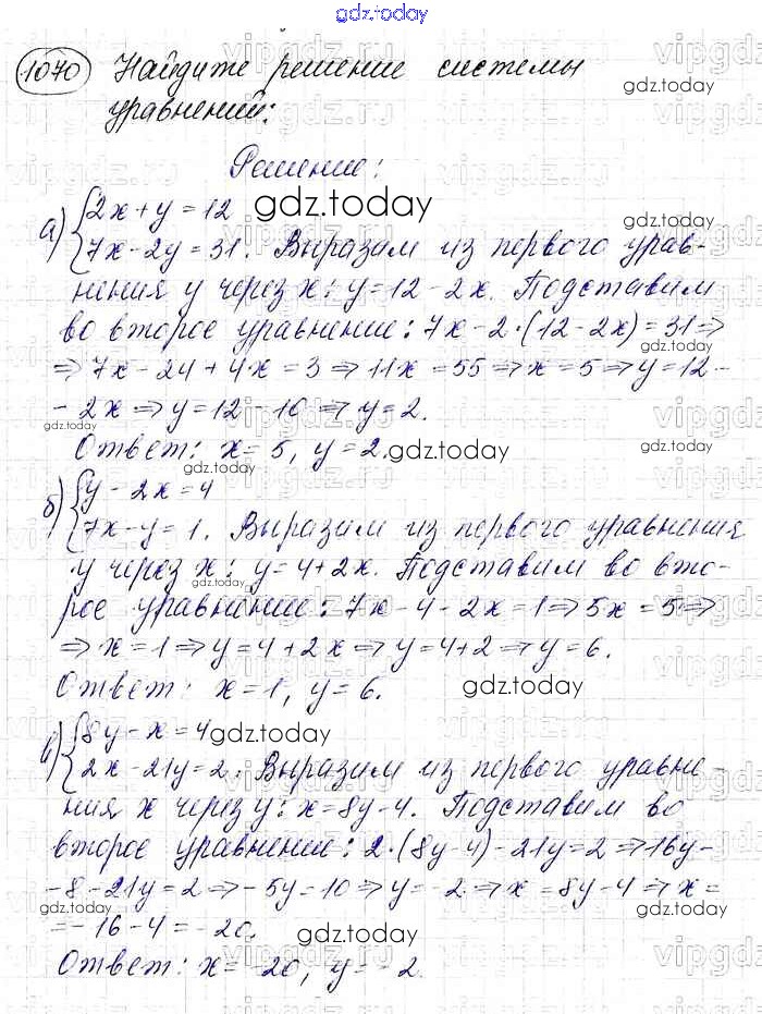 На страницах сайта gdz.today вы найдете учебный и вспомогательный материал, направленный на улучшения знаний школьной программы. ГДЗ - онлайн мир знаний Решение. Упражнения 1070 Учебнику по Алгебре для 7 класса Макарычев, Миндюк Просвещение 2015