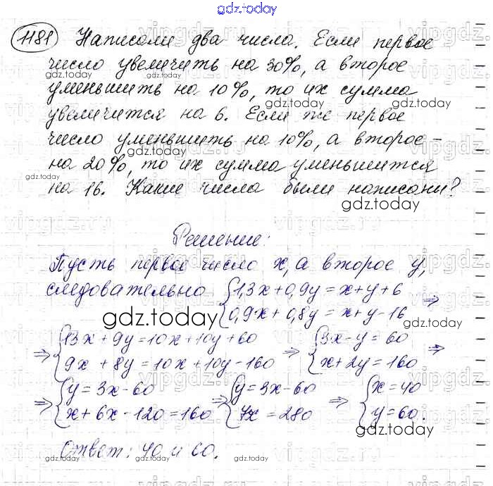 Ответы к Решение. Упражнения 1181 Учебнику по Алгебре для 7 класса Макарычев, Миндюк Просвещение 2015
