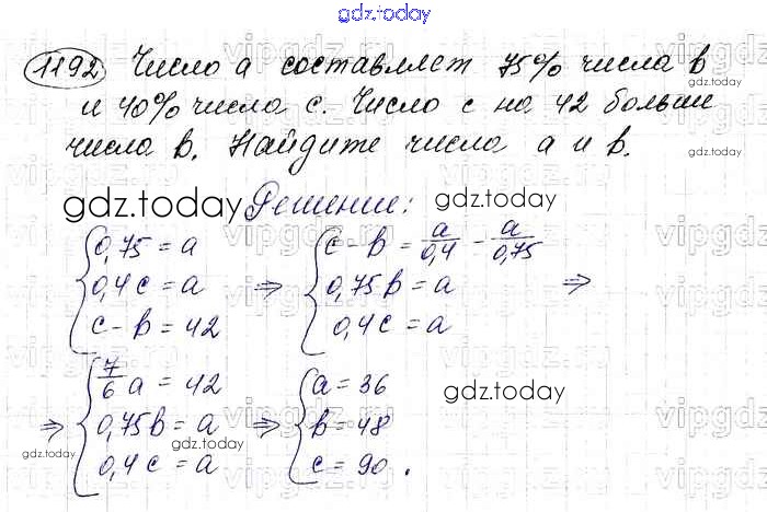 Ответы к Решение. Упражнения 1192 Учебнику по Алгебре для 7 класса Макарычев, Миндюк Просвещение 2015