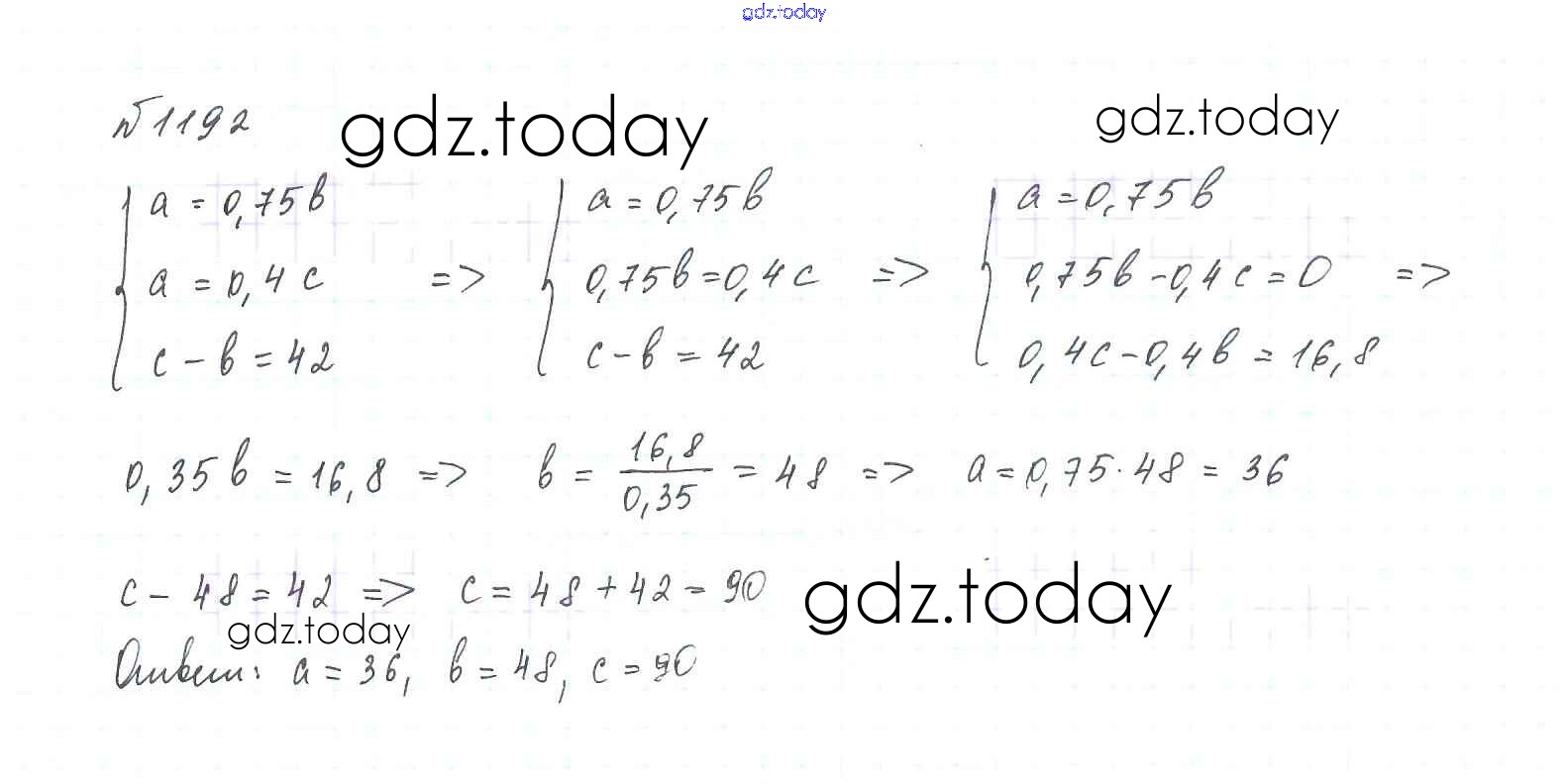 На страницах сайта gdz.today вы найдете учебный и вспомогательный материал, направленный на улучшения знаний школьной программы. ГДЗ - онлайн мир знаний Решение. Упражнения 1192 Учебнику по Алгебре для 7 класса Макарычев, Миндюк Просвещение 2015