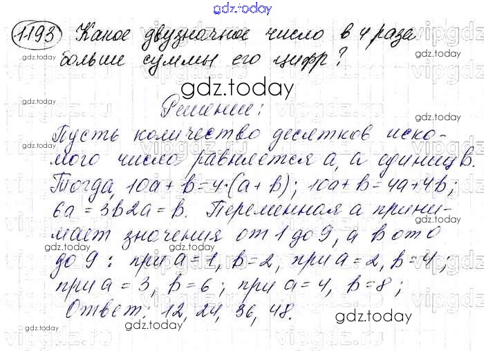 Ответы к Решение. Упражнения 1193 Учебнику по Алгебре для 7 класса Макарычев, Миндюк Просвещение 2015
