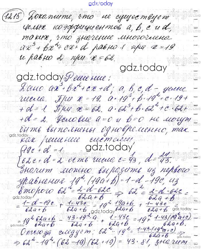 На страницах сайта gdz.today вы найдете учебный и вспомогательный материал, направленный на улучшения знаний школьной программы. ГДЗ - онлайн мир знаний Решение. Упражнения 1215 Учебнику по Алгебре для 7 класса Макарычев, Миндюк Просвещение 2015