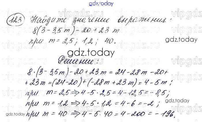 На страницах сайта gdz.today вы найдете учебный и вспомогательный материал, направленный на улучшения знаний школьной программы. ГДЗ - онлайн мир знаний Решение. Упражнения 123 Учебнику по Алгебре для 7 класса Макарычев, Миндюк Просвещение 2015