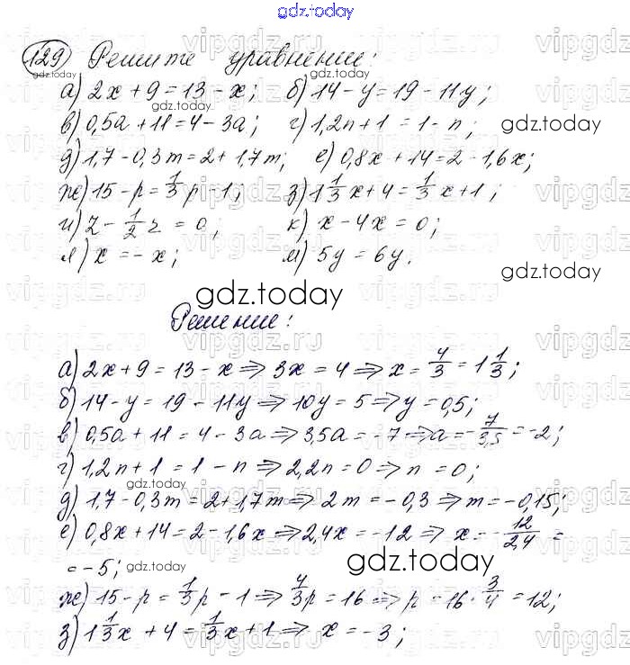 Ответы к Решение. Упражнения 129 Учебнику по Алгебре для 7 класса Макарычев, Миндюк Просвещение 2015