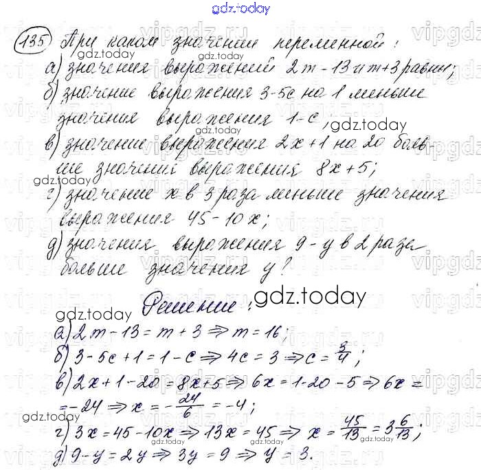 Ответы к Решение. Упражнения 135 Учебнику по Алгебре для 7 класса Макарычев, Миндюк Просвещение 2015