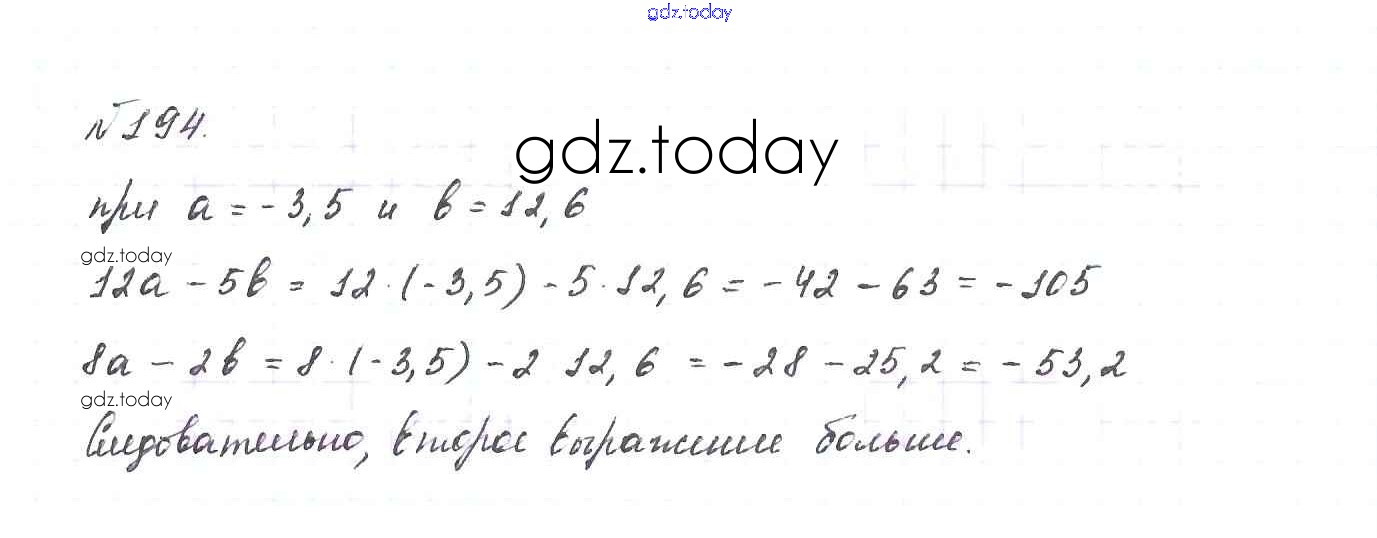 На страницах сайта gdz.today вы найдете учебный и вспомогательный материал, направленный на улучшения знаний школьной программы. ГДЗ - онлайн мир знаний Решение. Упражнения 194 Учебнику по Алгебре для 7 класса Макарычев, Миндюк Просвещение 2015
