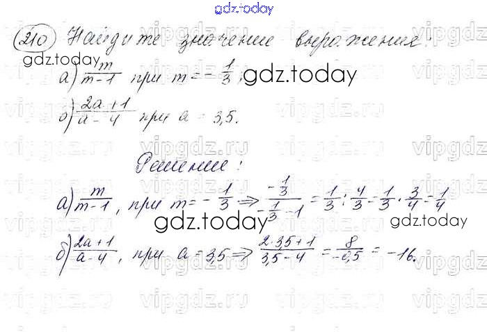 Ответы к Решение. Упражнения 210 Учебнику по Алгебре для 7 класса Макарычев, Миндюк Просвещение 2015