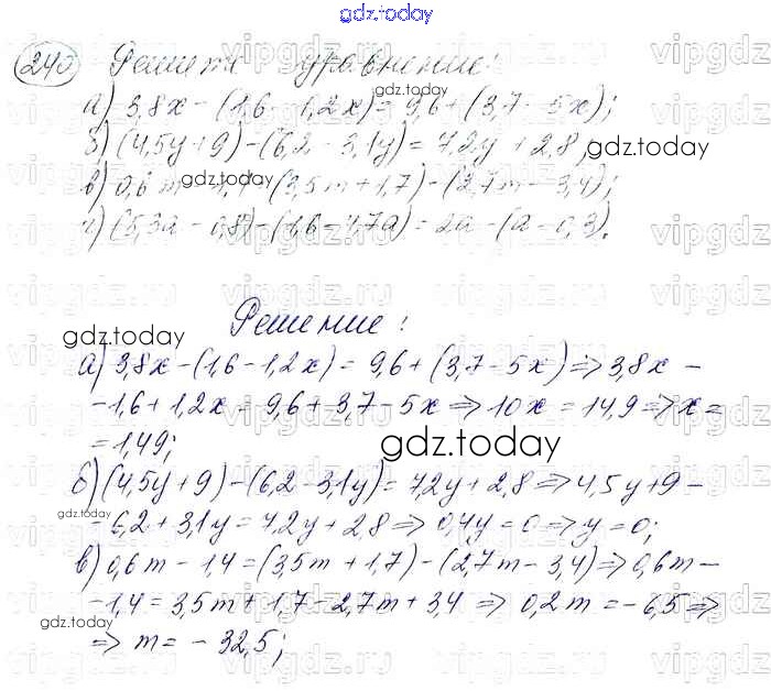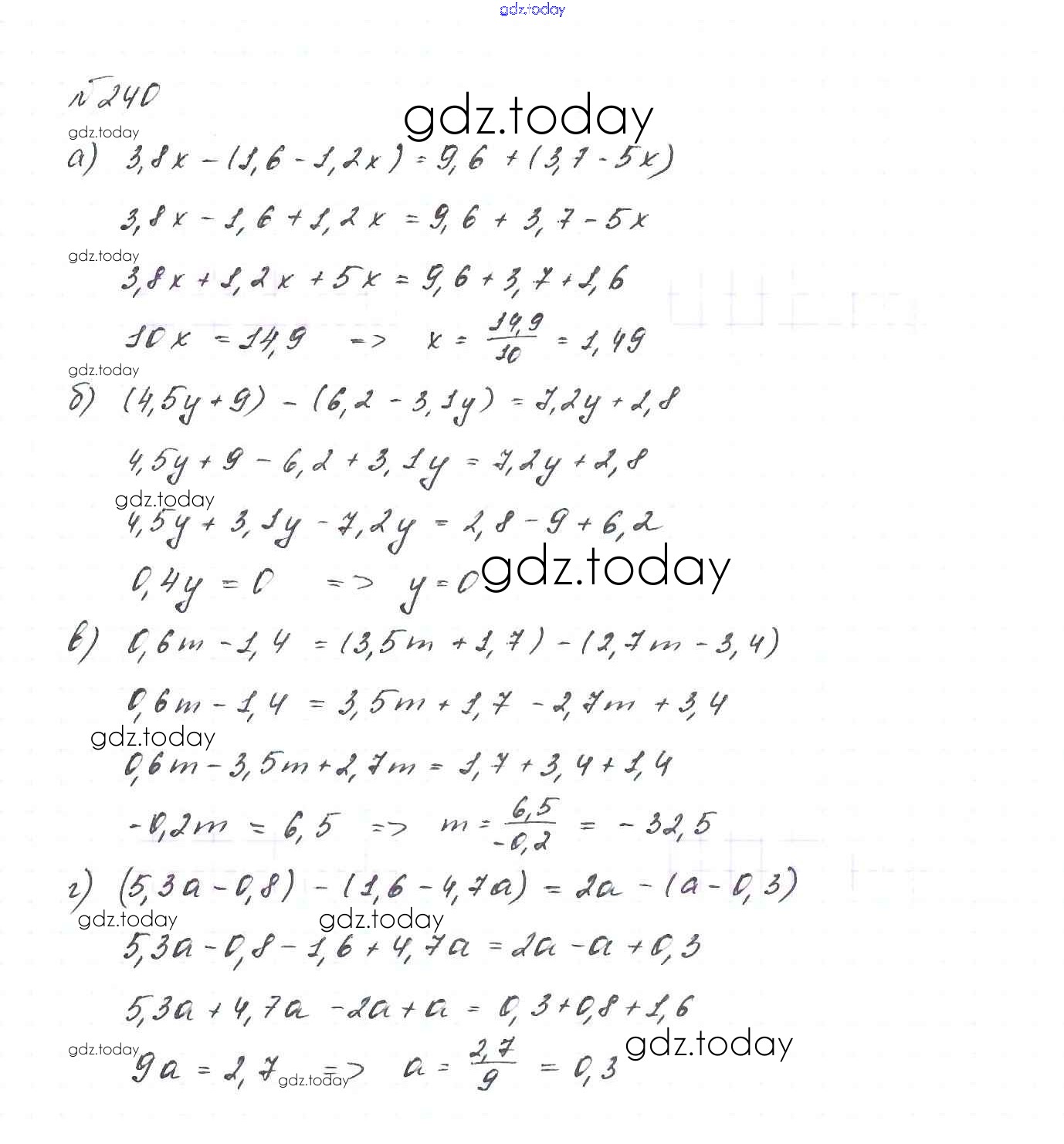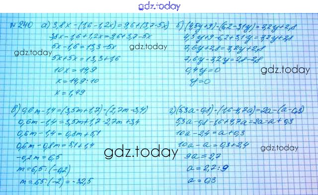На страницах сайта gdz.today вы найдете учебный и вспомогательный материал, направленный на улучшения знаний школьной программы. ГДЗ - онлайн мир знаний Решение. Упражнения 240 Учебнику по Алгебре для 7 класса Макарычев, Миндюк Просвещение 2015