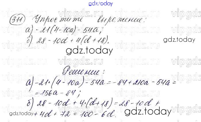 На страницах сайта gdz.today вы найдете учебный и вспомогательный материал, направленный на улучшения знаний школьной программы. ГДЗ - онлайн мир знаний Решение. Упражнения 311 Учебнику по Алгебре для 7 класса Макарычев, Миндюк Просвещение 2015