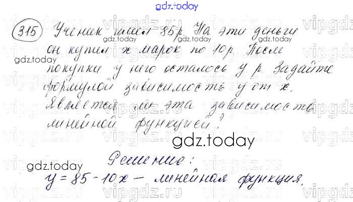 На страницах сайта gdz.today вы найдете учебный и вспомогательный материал, направленный на улучшения знаний школьной программы. ГДЗ - онлайн мир знаний Решение. Упражнения 315 Учебнику по Алгебре для 7 класса Макарычев, Миндюк Просвещение 2015