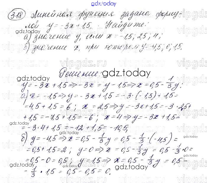 Ответы к Решение. Упражнения 318 Учебнику по Алгебре для 7 класса Макарычев, Миндюк Просвещение 2015