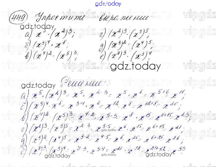 На страницах сайта gdz.today вы найдете учебный и вспомогательный материал, направленный на улучшения знаний школьной программы. ГДЗ - онлайн мир знаний Решение. Упражнения 449 Учебнику по Алгебре для 7 класса Макарычев, Миндюк Просвещение 2015