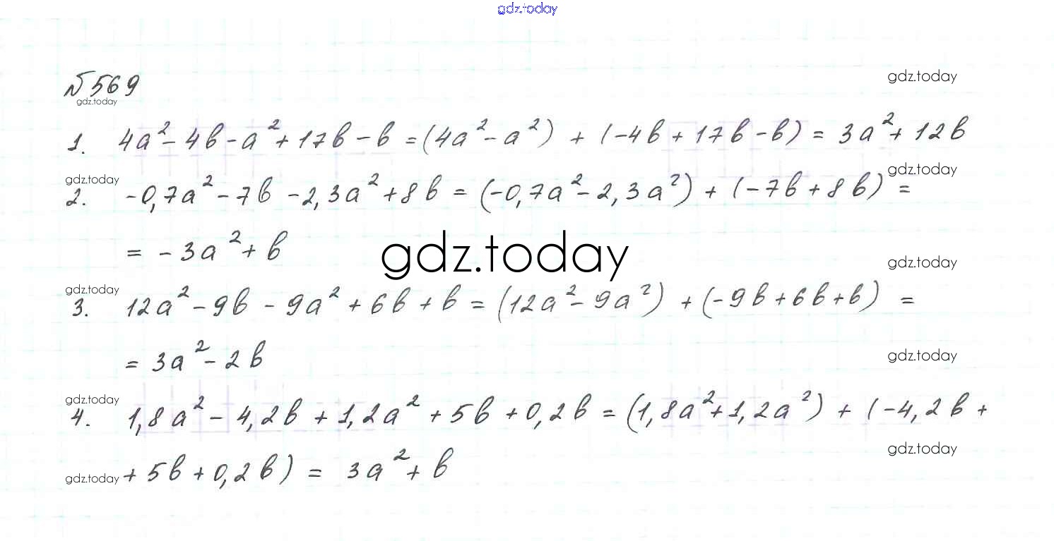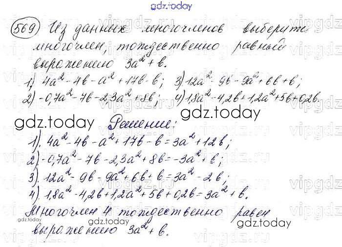 На страницах сайта gdz.today вы найдете учебный и вспомогательный материал, направленный на улучшения знаний школьной программы. ГДЗ - онлайн мир знаний Решение. Упражнения 569 Учебнику по Алгебре для 7 класса Макарычев, Миндюк Просвещение 2015