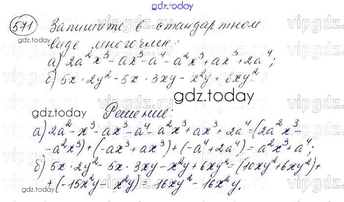 На страницах сайта gdz.today вы найдете учебный и вспомогательный материал, направленный на улучшения знаний школьной программы. ГДЗ - онлайн мир знаний Решение. Упражнения 571 Учебнику по Алгебре для 7 класса Макарычев, Миндюк Просвещение 2015