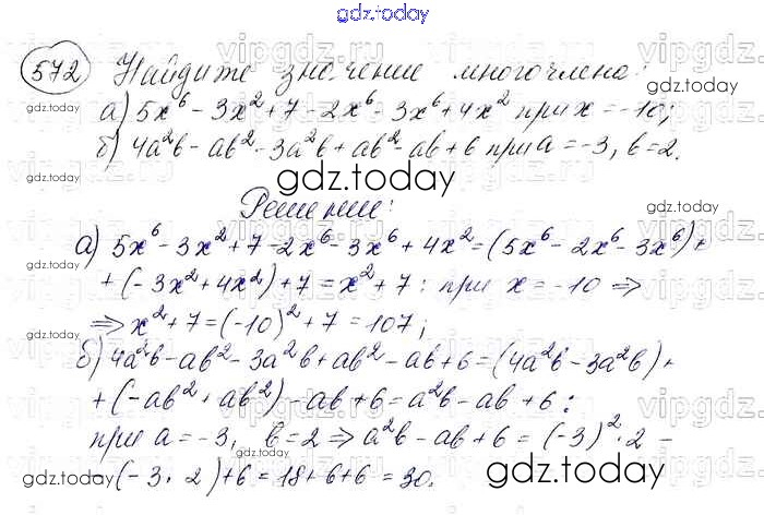 На страницах сайта gdz.today вы найдете учебный и вспомогательный материал, направленный на улучшения знаний школьной программы. ГДЗ - онлайн мир знаний Решение. Упражнения 572 Учебнику по Алгебре для 7 класса Макарычев, Миндюк Просвещение 2015