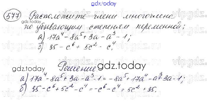 На страницах сайта gdz.today вы найдете учебный и вспомогательный материал, направленный на улучшения знаний школьной программы. ГДЗ - онлайн мир знаний Решение. Упражнения 577 Учебнику по Алгебре для 7 класса Макарычев, Миндюк Просвещение 2015