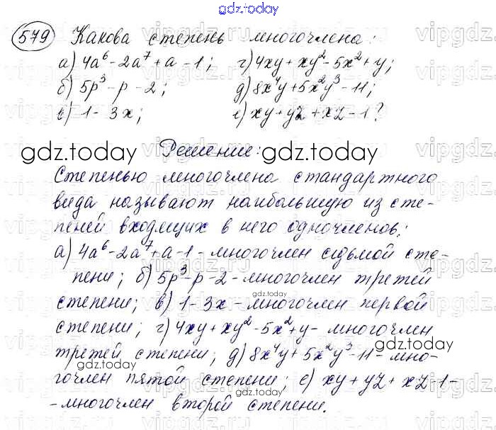 На страницах сайта gdz.today вы найдете учебный и вспомогательный материал, направленный на улучшения знаний школьной программы. ГДЗ - онлайн мир знаний Решение. Упражнения 579 Учебнику по Алгебре для 7 класса Макарычев, Миндюк Просвещение 2015