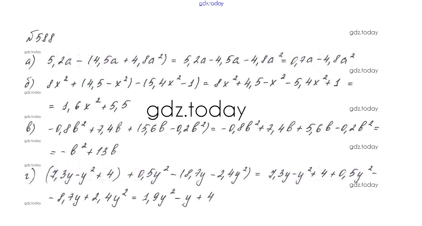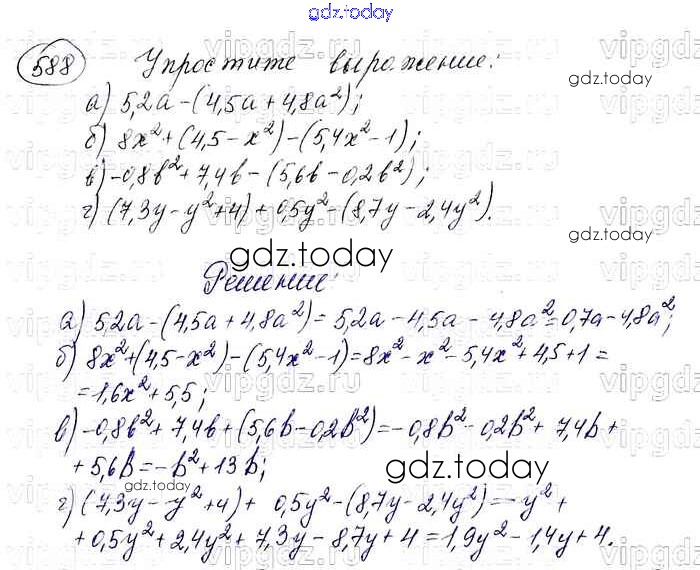 На страницах сайта gdz.today вы найдете учебный и вспомогательный материал, направленный на улучшения знаний школьной программы. ГДЗ - онлайн мир знаний Решение. Упражнения 588 Учебнику по Алгебре для 7 класса Макарычев, Миндюк Просвещение 2015