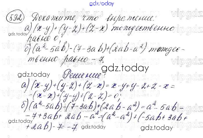 На страницах сайта gdz.today вы найдете учебный и вспомогательный материал, направленный на улучшения знаний школьной программы. ГДЗ - онлайн мир знаний Решение. Упражнения 592 Учебнику по Алгебре для 7 класса Макарычев, Миндюк Просвещение 2015
