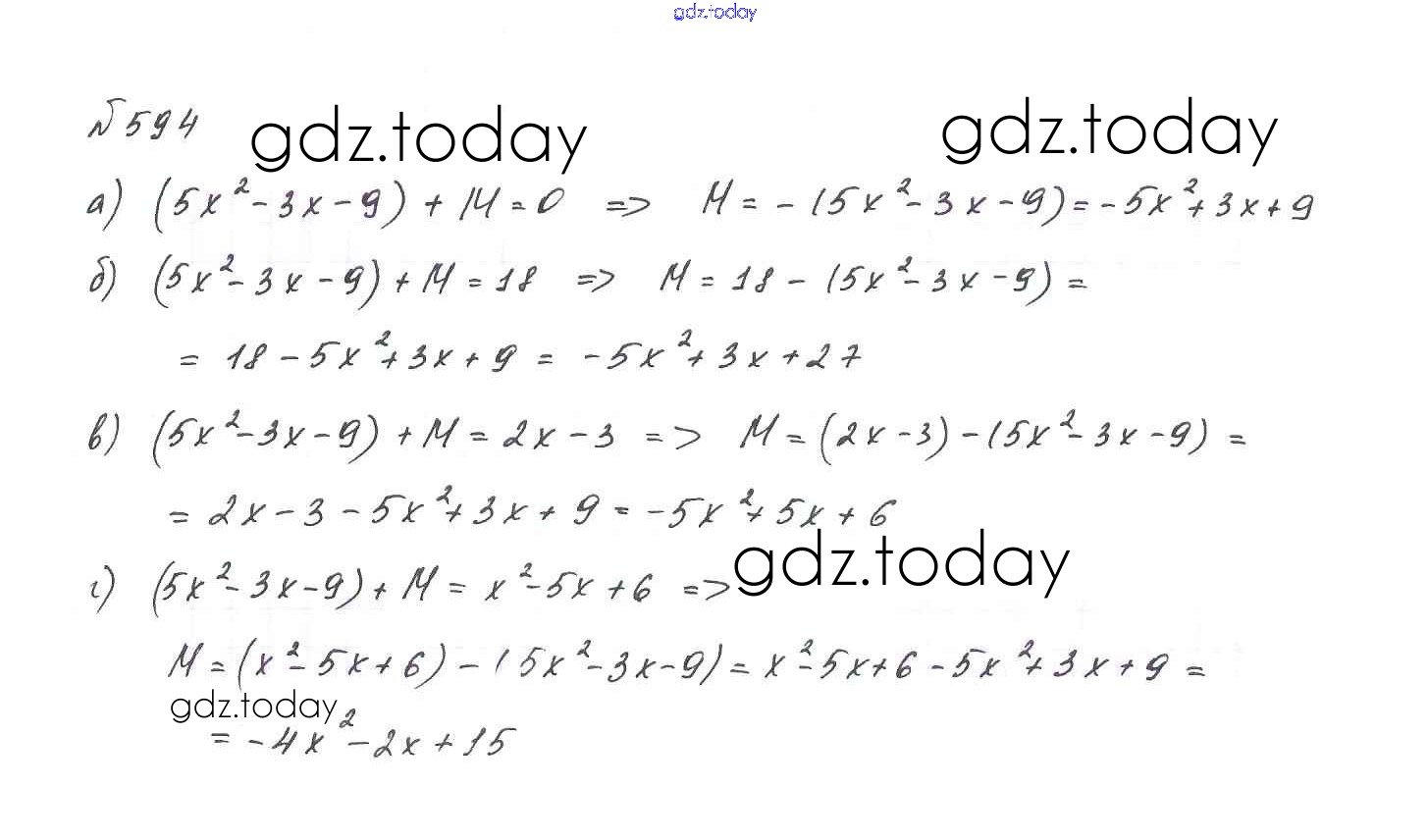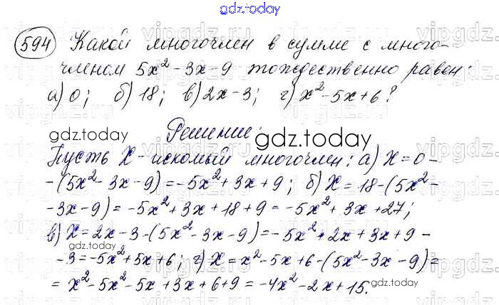 На страницах сайта gdz.today вы найдете учебный и вспомогательный материал, направленный на улучшения знаний школьной программы. ГДЗ - онлайн мир знаний Решение. Упражнения 594 Учебнику по Алгебре для 7 класса Макарычев, Миндюк Просвещение 2015