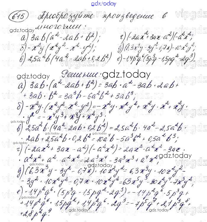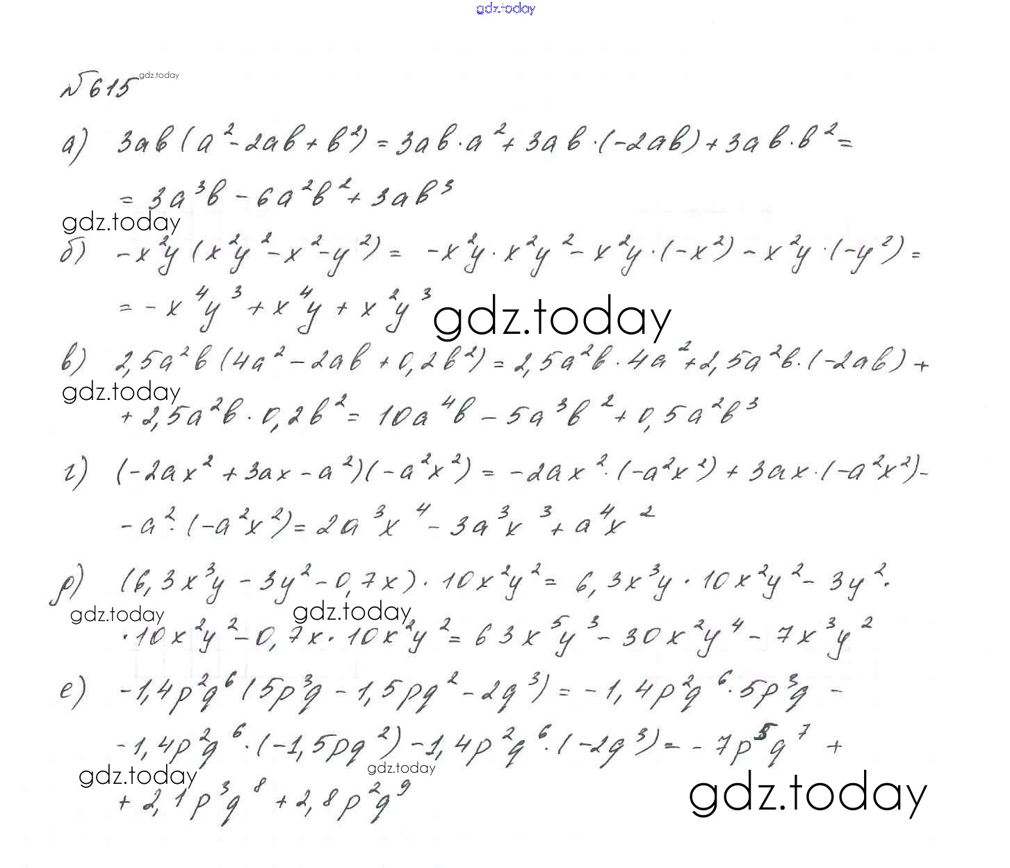 На страницах сайта gdz.today вы найдете учебный и вспомогательный материал, направленный на улучшения знаний школьной программы. ГДЗ - онлайн мир знаний Решение. Упражнения 615 Учебнику по Алгебре для 7 класса Макарычев, Миндюк Просвещение 2015