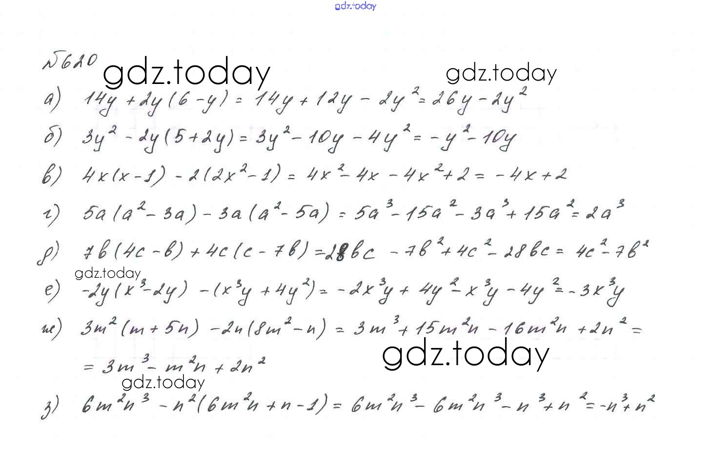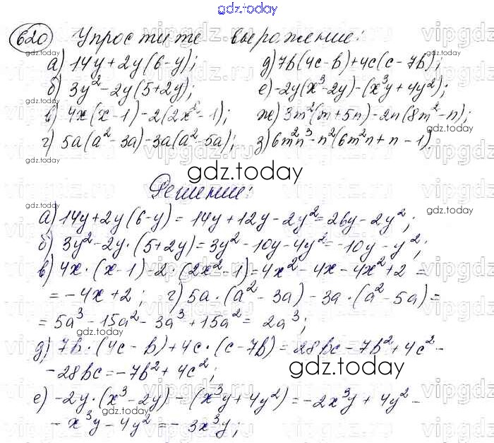 На страницах сайта gdz.today вы найдете учебный и вспомогательный материал, направленный на улучшения знаний школьной программы. ГДЗ - онлайн мир знаний Решение. Упражнения 620 Учебнику по Алгебре для 7 класса Макарычев, Миндюк Просвещение 2015