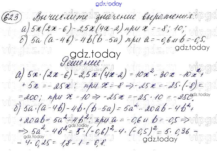 На страницах сайта gdz.today вы найдете учебный и вспомогательный материал, направленный на улучшения знаний школьной программы. ГДЗ - онлайн мир знаний Решение. Упражнения 623 Учебнику по Алгебре для 7 класса Макарычев, Миндюк Просвещение 2015