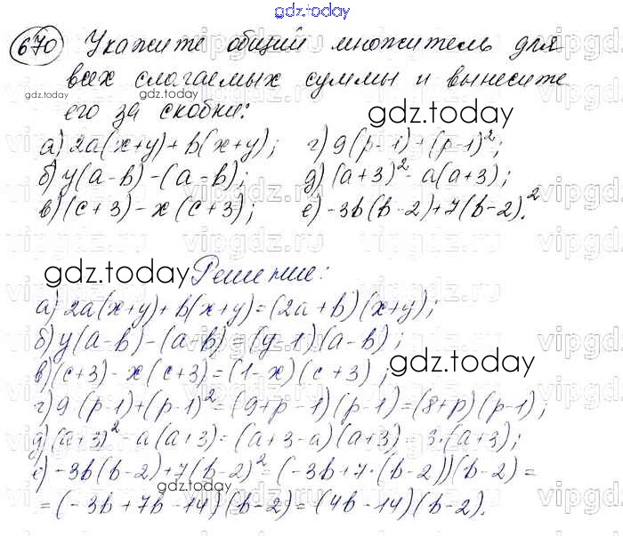 На страницах сайта gdz.today вы найдете учебный и вспомогательный материал, направленный на улучшения знаний школьной программы. ГДЗ - онлайн мир знаний Решение. Упражнения 670 Учебнику по Алгебре для 7 класса Макарычев, Миндюк Просвещение 2015