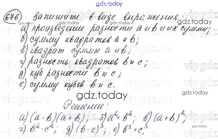На страницах сайта gdz.today вы найдете учебный и вспомогательный материал, направленный на улучшения знаний школьной программы. ГДЗ - онлайн мир знаний Решение. Упражнения 676 Учебнику по Алгебре для 7 класса Макарычев, Миндюк Просвещение 2015