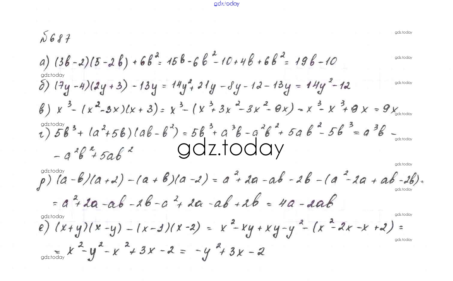 На страницах сайта gdz.today вы найдете учебный и вспомогательный материал, направленный на улучшения знаний школьной программы. ГДЗ - онлайн мир знаний Решение. Упражнения 687 Учебнику по Алгебре для 7 класса Макарычев, Миндюк Просвещение 2015