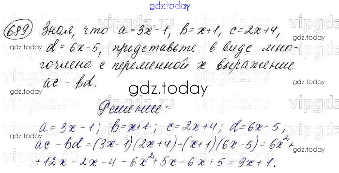 На страницах сайта gdz.today вы найдете учебный и вспомогательный материал, направленный на улучшения знаний школьной программы. ГДЗ - онлайн мир знаний Решение. Упражнения 689 Учебнику по Алгебре для 7 класса Макарычев, Миндюк Просвещение 2015