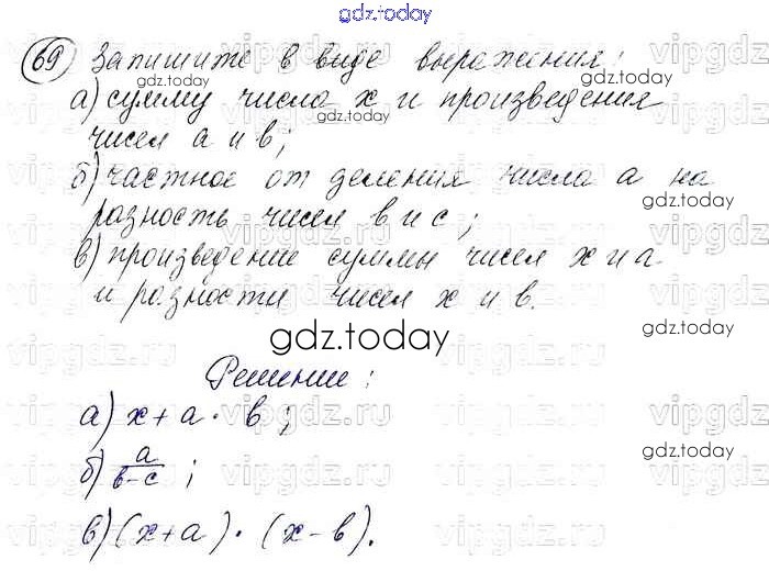 На страницах сайта gdz.today вы найдете учебный и вспомогательный материал, направленный на улучшения знаний школьной программы. ГДЗ - онлайн мир знаний Решение. Упражнения 69 Учебнику по Алгебре для 7 класса Макарычев, Миндюк Просвещение 2015