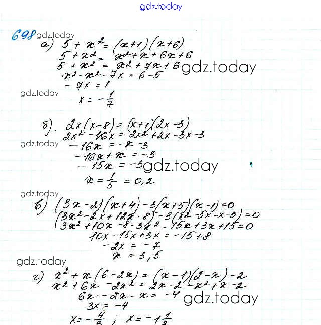 На страницах сайта gdz.today вы найдете учебный и вспомогательный материал, направленный на улучшения знаний школьной программы. ГДЗ - онлайн мир знаний Решение. Упражнения 698 Учебнику по Алгебре для 7 класса Макарычев, Миндюк Просвещение 2015