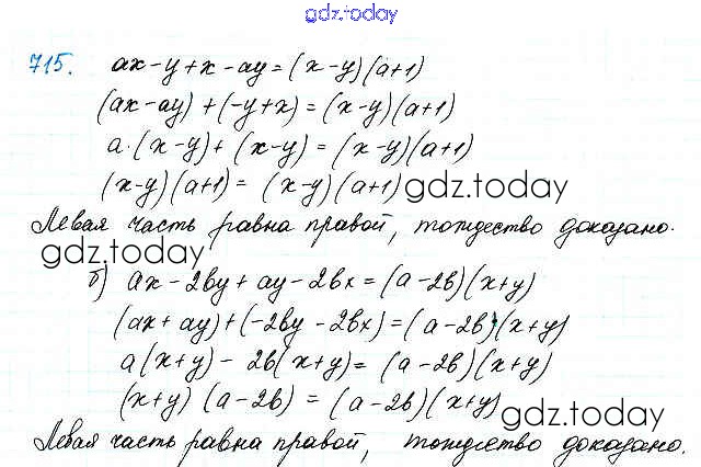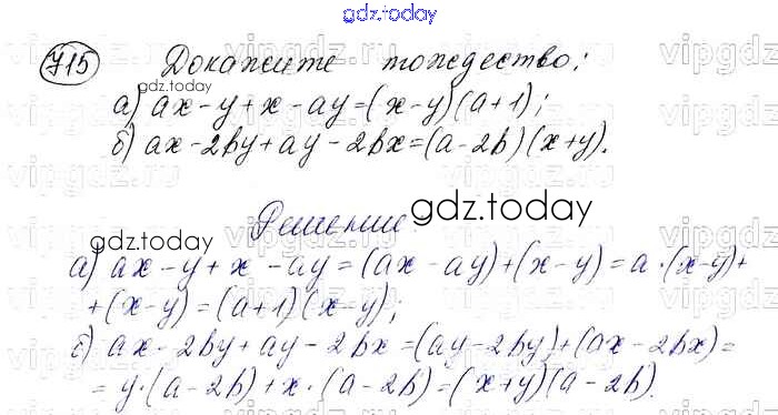 На страницах сайта gdz.today вы найдете учебный и вспомогательный материал, направленный на улучшения знаний школьной программы. ГДЗ - онлайн мир знаний Решение. Упражнения 715 Учебнику по Алгебре для 7 класса Макарычев, Миндюк Просвещение 2015