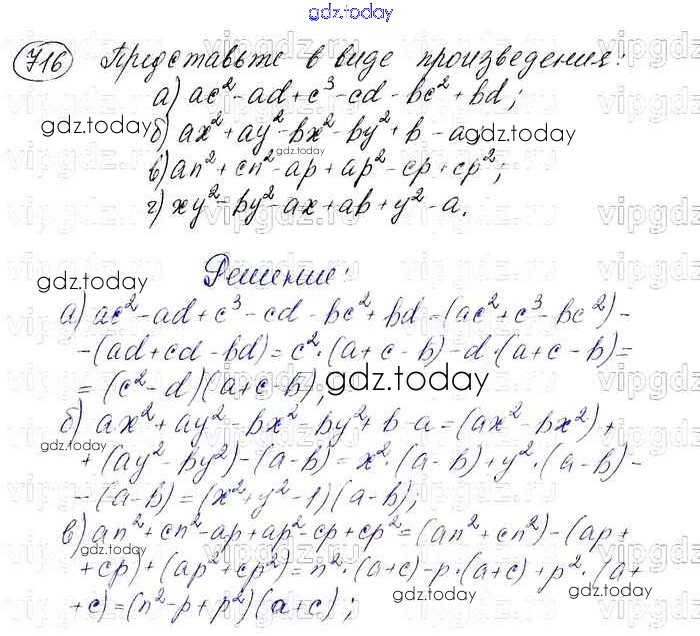 На страницах сайта gdz.today вы найдете учебный и вспомогательный материал, направленный на улучшения знаний школьной программы. ГДЗ - онлайн мир знаний Решение. Упражнения 716 Учебнику по Алгебре для 7 класса Макарычев, Миндюк Просвещение 2015