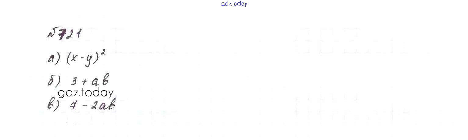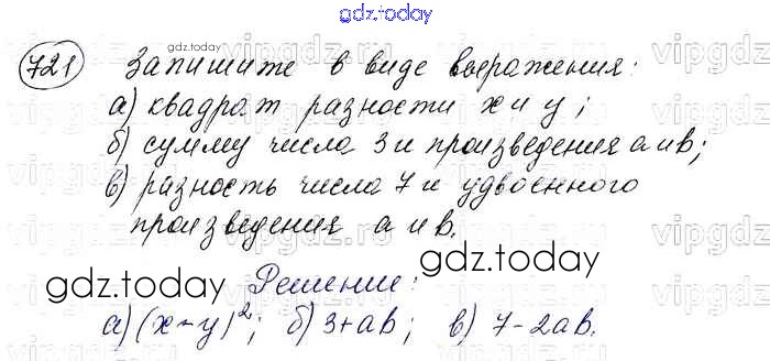 На страницах сайта gdz.today вы найдете учебный и вспомогательный материал, направленный на улучшения знаний школьной программы. ГДЗ - онлайн мир знаний Решение. Упражнения 721 Учебнику по Алгебре для 7 класса Макарычев, Миндюк Просвещение 2015