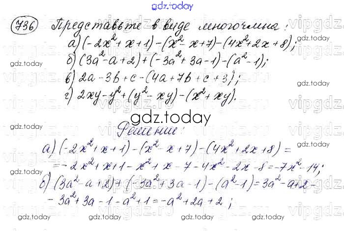 На страницах сайта gdz.today вы найдете учебный и вспомогательный материал, направленный на улучшения знаний школьной программы. ГДЗ - онлайн мир знаний Решение. Упражнения 736 Учебнику по Алгебре для 7 класса Макарычев, Миндюк Просвещение 2015