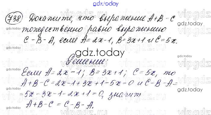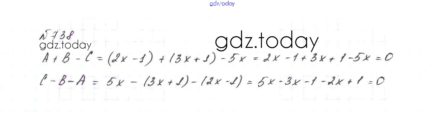На страницах сайта gdz.today вы найдете учебный и вспомогательный материал, направленный на улучшения знаний школьной программы. ГДЗ - онлайн мир знаний Решение. Упражнения 738 Учебнику по Алгебре для 7 класса Макарычев, Миндюк Просвещение 2015