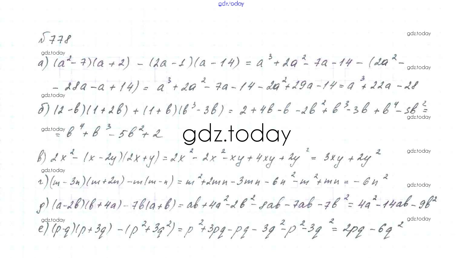 На страницах сайта gdz.today вы найдете учебный и вспомогательный материал, направленный на улучшения знаний школьной программы. ГДЗ - онлайн мир знаний Решение. Упражнения 778 Учебнику по Алгебре для 7 класса Макарычев, Миндюк Просвещение 2015