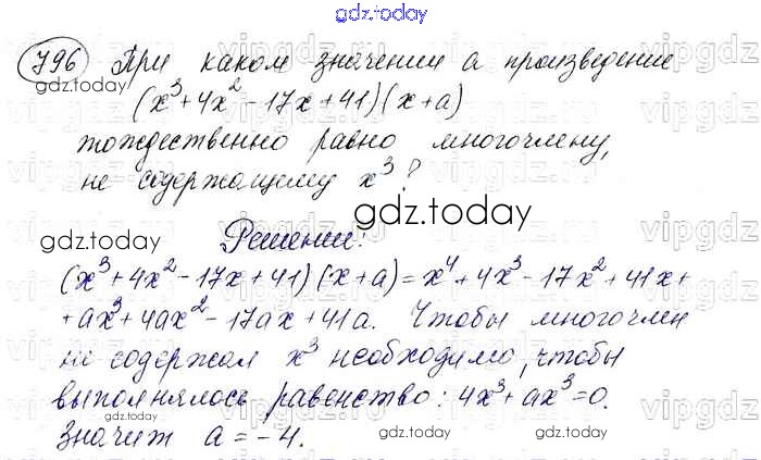 На страницах сайта gdz.today вы найдете учебный и вспомогательный материал, направленный на улучшения знаний школьной программы. ГДЗ - онлайн мир знаний Решение. Упражнения 796 Учебнику по Алгебре для 7 класса Макарычев, Миндюк Просвещение 2015