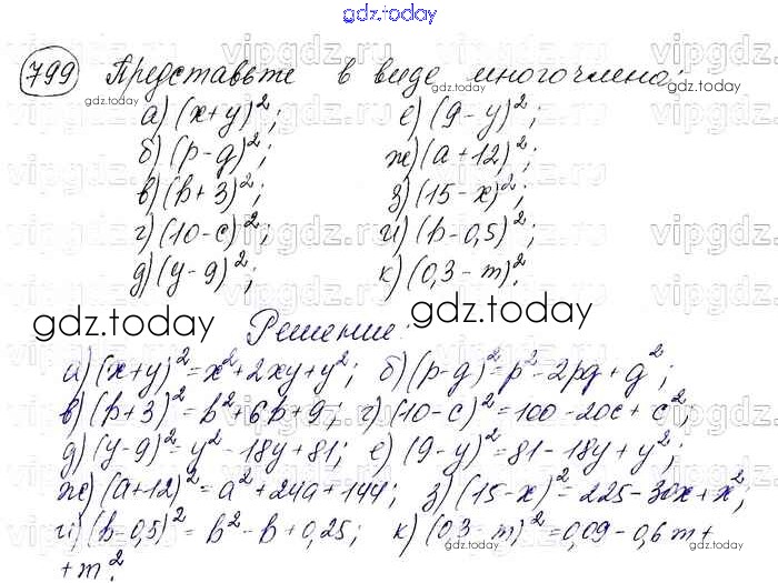 На страницах сайта gdz.today вы найдете учебный и вспомогательный материал, направленный на улучшения знаний школьной программы. ГДЗ - онлайн мир знаний Решение. Упражнения 799 Учебнику по Алгебре для 7 класса Макарычев, Миндюк Просвещение 2015