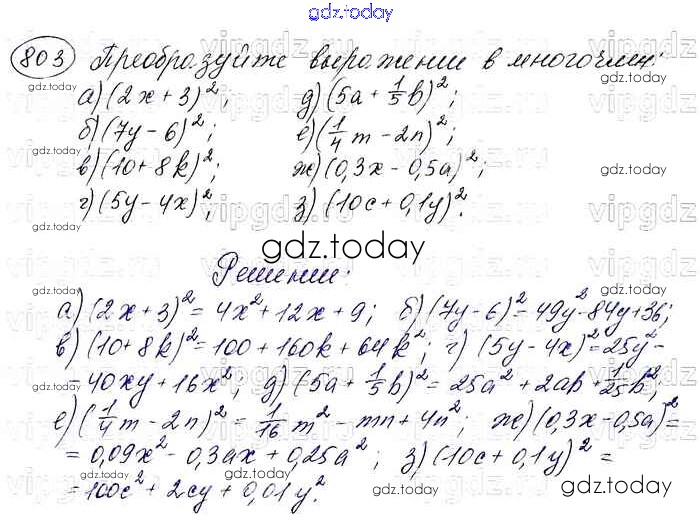На страницах сайта gdz.today вы найдете учебный и вспомогательный материал, направленный на улучшения знаний школьной программы. ГДЗ - онлайн мир знаний Решение. Упражнения 803 Учебнику по Алгебре для 7 класса Макарычев, Миндюк Просвещение 2015